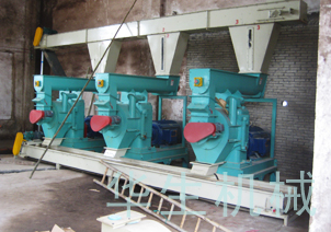 本生產(chǎn)線適合原材料豐富地區(qū)布置作業(yè),在國內(nèi)逐漸有較多客戶投資操作。采用多臺(3臺以上)制粒機組合,新一代刮板分配模式形成生產(chǎn)線。該生產(chǎn)線將大部分單機進料輸送系統(tǒng)組合一體化,系統(tǒng)程序明了、工人操作方便。